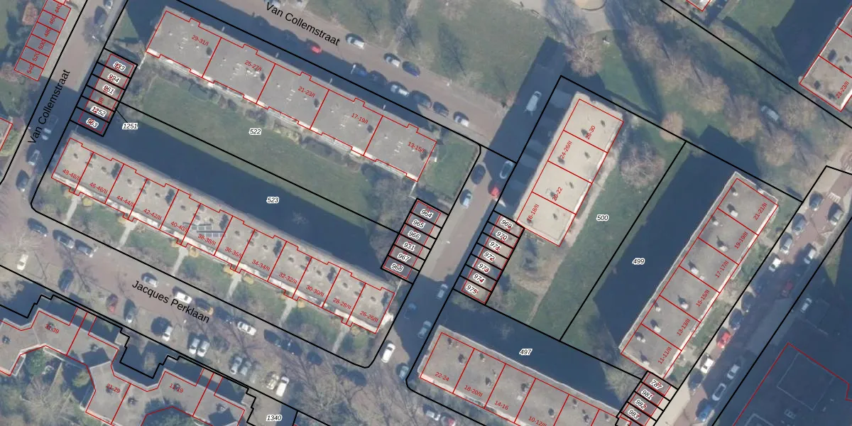 Gebruik de zoekbalk of klik op een perceel voor informatie over de adressen binnen dit perceel.