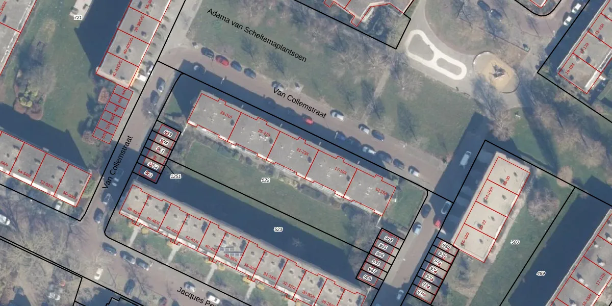 Het perceel waarop Van Collemstraat 21 staat heeft een oppervlakte van 2295 m². Dit is een zeer groot perceel. De perceeloppervlakte wordt geregistreerd door het Kadaster. Gedetailleerde informatie over de maten van dit perceel kunt u vinden in het rapport Kadastrale kaart met maatvoering van Van Collemstraat 21.