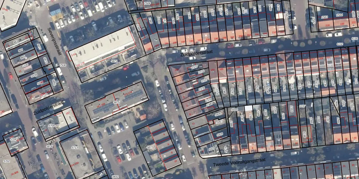 Gebruik de zoekbalk of klik op een perceel voor informatie over de adressen binnen dit perceel.