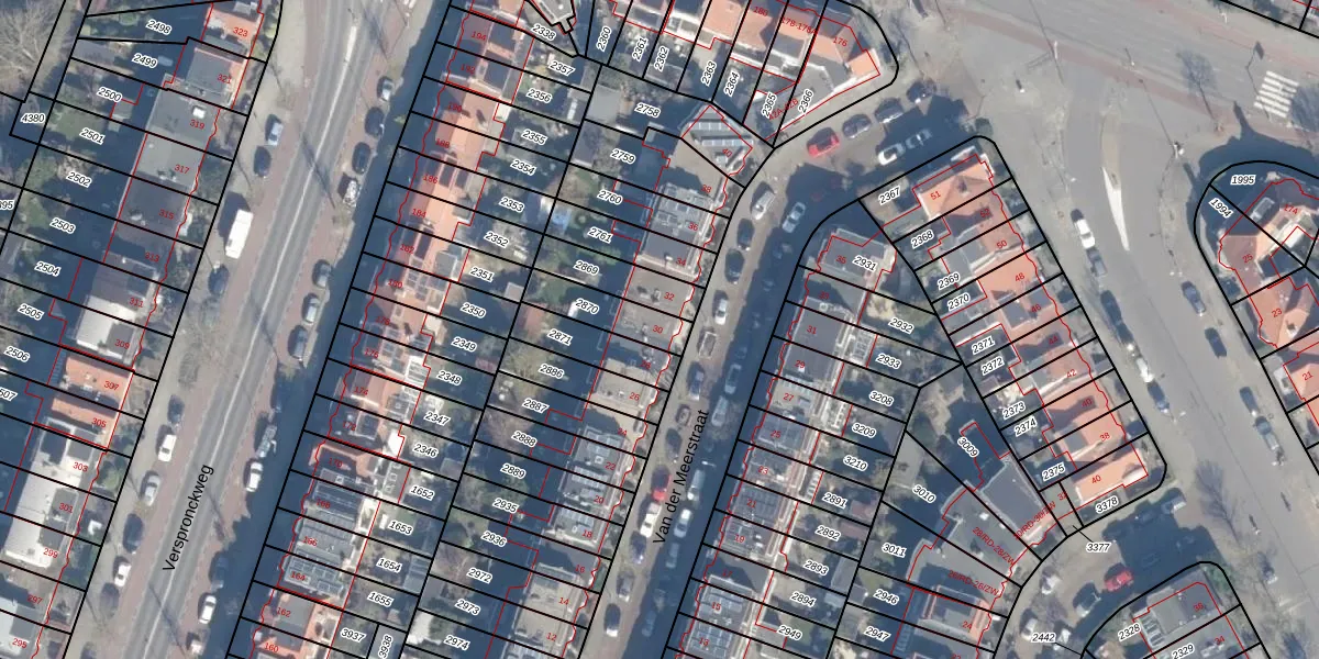 Van der Meerstraat 30 is gelegen op kadastraal perceel HLM01G2870. Deze kadastrale aanduiding is uniek en wordt gebruikt door het Kadaster om eigendomsrechten en andere zakelijke rechten vast te leggen. Het perceel maakt onderdeel uit van de kadastrale gemeente Haarlem.