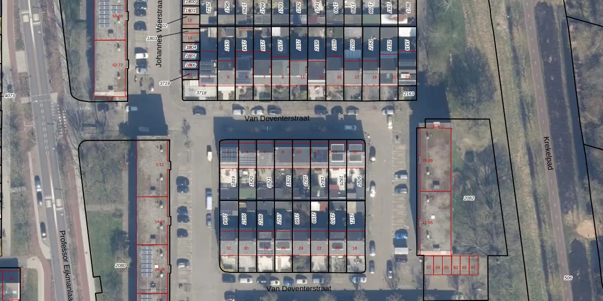 Het perceel waarop Van Deventerstraat 10 staat heeft een oppervlakte van 121 m². Dit is een middelgroot perceel. De perceeloppervlakte wordt geregistreerd door het Kadaster. Gedetailleerde informatie over de maten van dit perceel kunt u vinden in het rapport Kadastrale kaart met maatvoering van Van Deventerstraat 10.