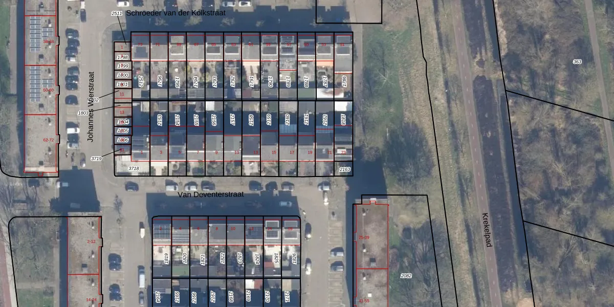 Het perceel waarop Van Deventerstraat 19 staat heeft een oppervlakte van 148 m². Dit is een middelgroot perceel. De perceeloppervlakte wordt geregistreerd door het Kadaster. Gedetailleerde informatie over de maten van dit perceel kunt u vinden in het rapport Kadastrale kaart met maatvoering van Van Deventerstraat 19.