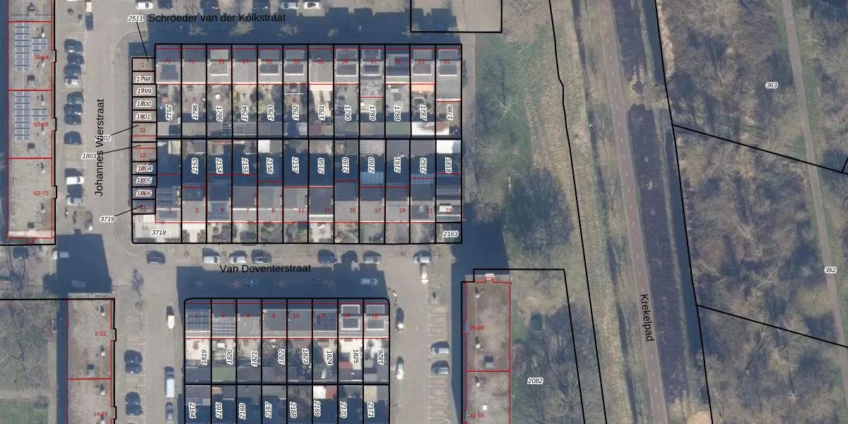 Gebruik de zoekbalk of klik op een perceel voor informatie over de adressen binnen dit perceel.