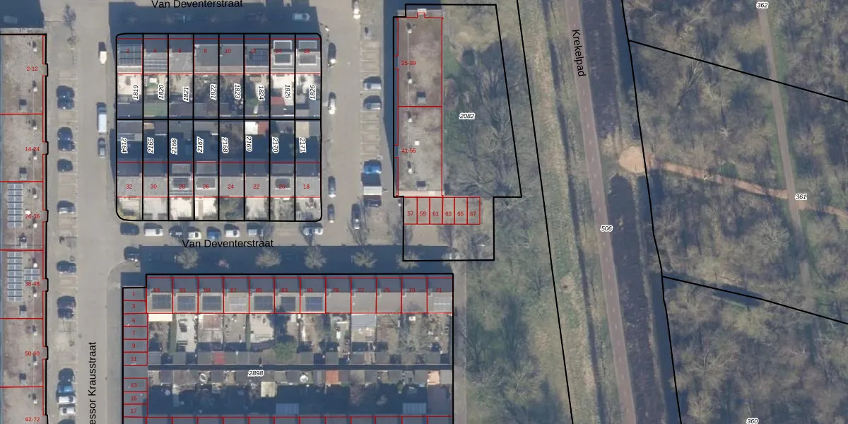 Het perceel waarop Van Deventerstraat 59 staat heeft een oppervlakte van 1553 m². Dit is een zeer groot perceel. De perceeloppervlakte wordt geregistreerd door het Kadaster. Gedetailleerde informatie over de maten van dit perceel kunt u vinden in het rapport Kadastrale kaart met maatvoering van Van Deventerstraat 59.