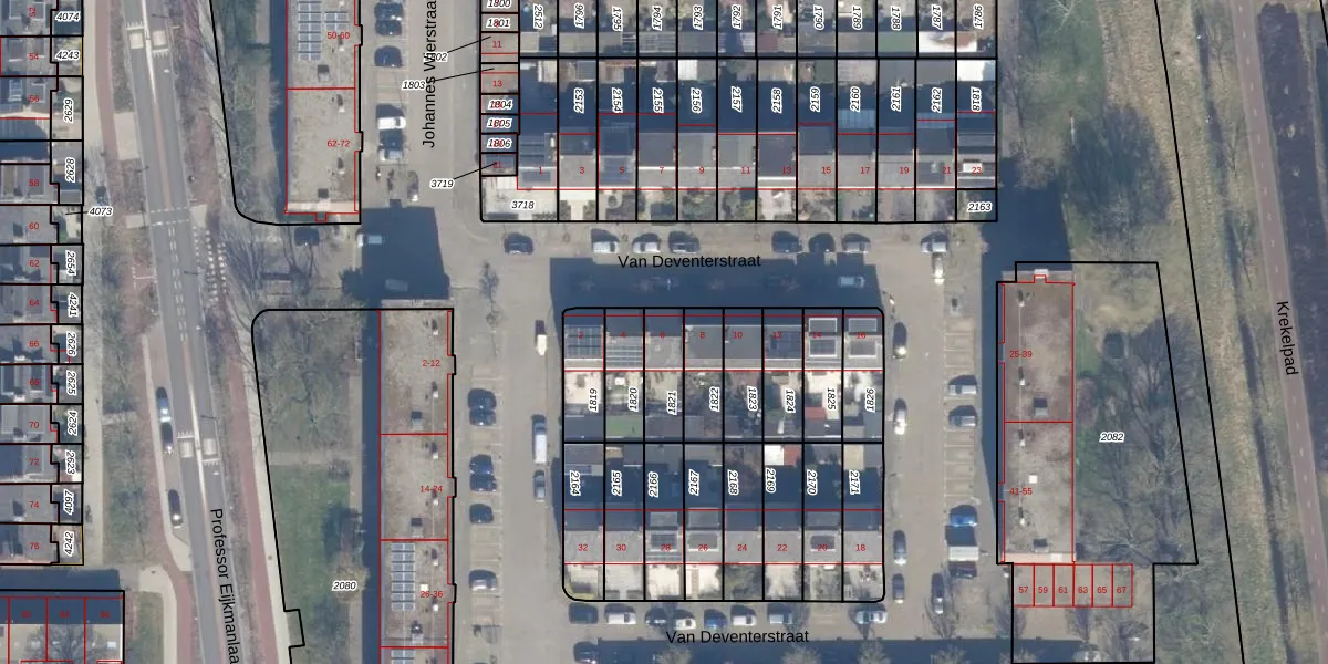 Het perceel waarop Van Deventerstraat 6 staat heeft een oppervlakte van 121 m². Dit is een middelgroot perceel. De perceeloppervlakte wordt geregistreerd door het Kadaster. Gedetailleerde informatie over de maten van dit perceel kunt u vinden in het rapport Kadastrale kaart met maatvoering van Van Deventerstraat 6.