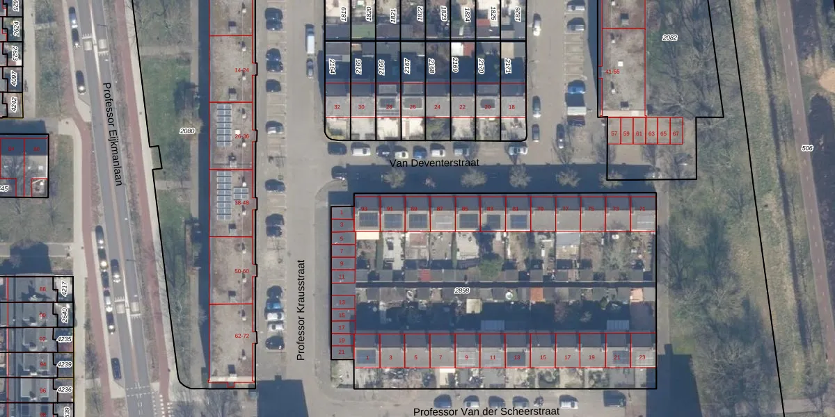 Het perceel waarop Van Deventerstraat 89 staat heeft een oppervlakte van 3605 m². Dit is een zeer groot perceel. De perceeloppervlakte wordt geregistreerd door het Kadaster. Gedetailleerde informatie over de maten van dit perceel kunt u vinden in het rapport Kadastrale kaart met maatvoering van Van Deventerstraat 89.