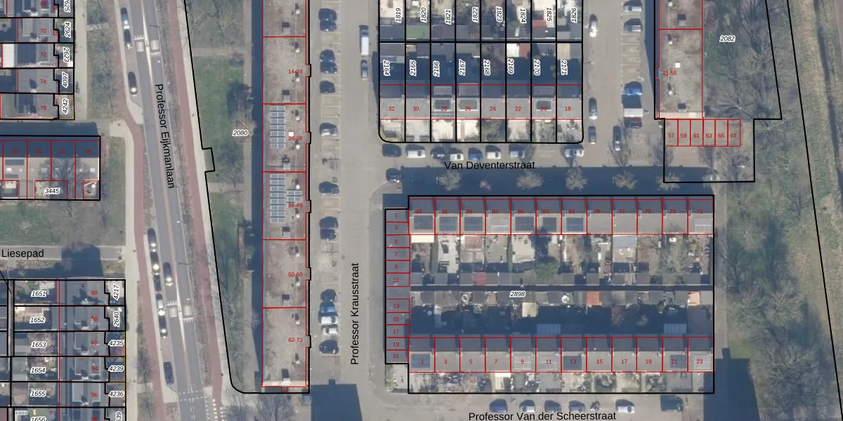Het perceel waarop Van Deventerstraat 93 staat heeft een oppervlakte van 3605 m². Dit is een zeer groot perceel. De perceeloppervlakte wordt geregistreerd door het Kadaster. Gedetailleerde informatie over de maten van dit perceel kunt u vinden in het rapport Kadastrale kaart met maatvoering van Van Deventerstraat 93.