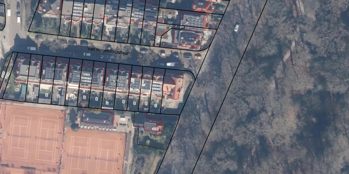 Van Hogendorpstraat 1-E is gelegen op kadastraal perceel HLM02S92. Deze kadastrale aanduiding is uniek en wordt gebruikt door het Kadaster om eigendomsrechten en andere zakelijke rechten vast te leggen. Het perceel maakt onderdeel uit van de kadastrale gemeente Haarlem.