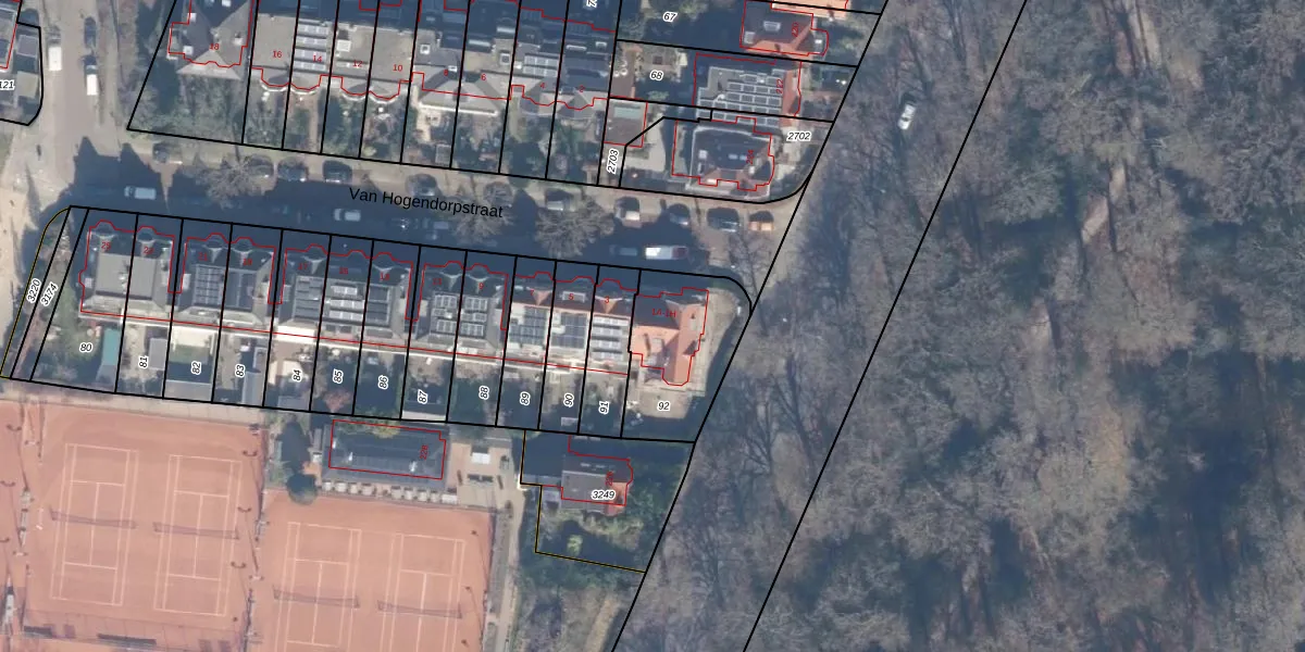 Van Hogendorpstraat 1-F is gelegen op kadastraal perceel HLM02S92. Deze kadastrale aanduiding is uniek en wordt gebruikt door het Kadaster om eigendomsrechten en andere zakelijke rechten vast te leggen. Het perceel maakt onderdeel uit van de kadastrale gemeente Haarlem.