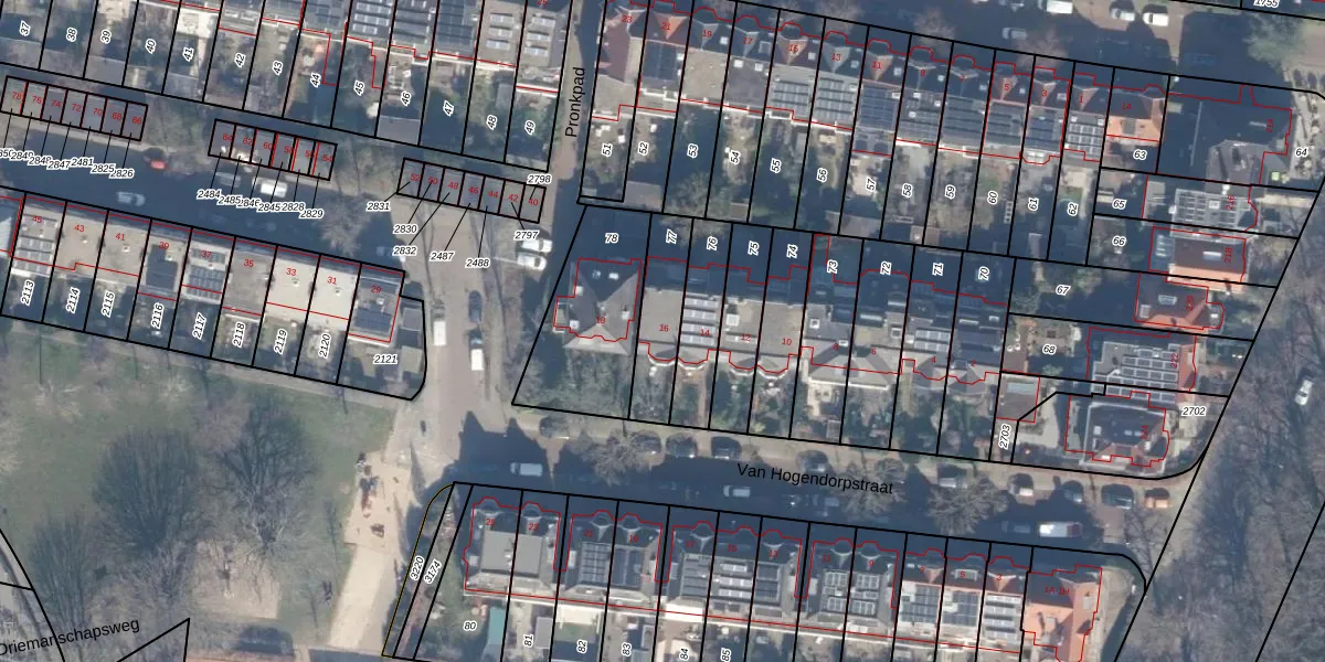 Van Hogendorpstraat 16 is gelegen op kadastraal perceel HLM02S77. Deze kadastrale aanduiding is uniek en wordt gebruikt door het Kadaster om eigendomsrechten en andere zakelijke rechten vast te leggen. Het perceel maakt onderdeel uit van de kadastrale gemeente Haarlem.