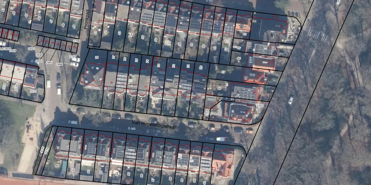 Gebruik de zoekbalk of klik op een perceel voor informatie over de adressen binnen dit perceel.