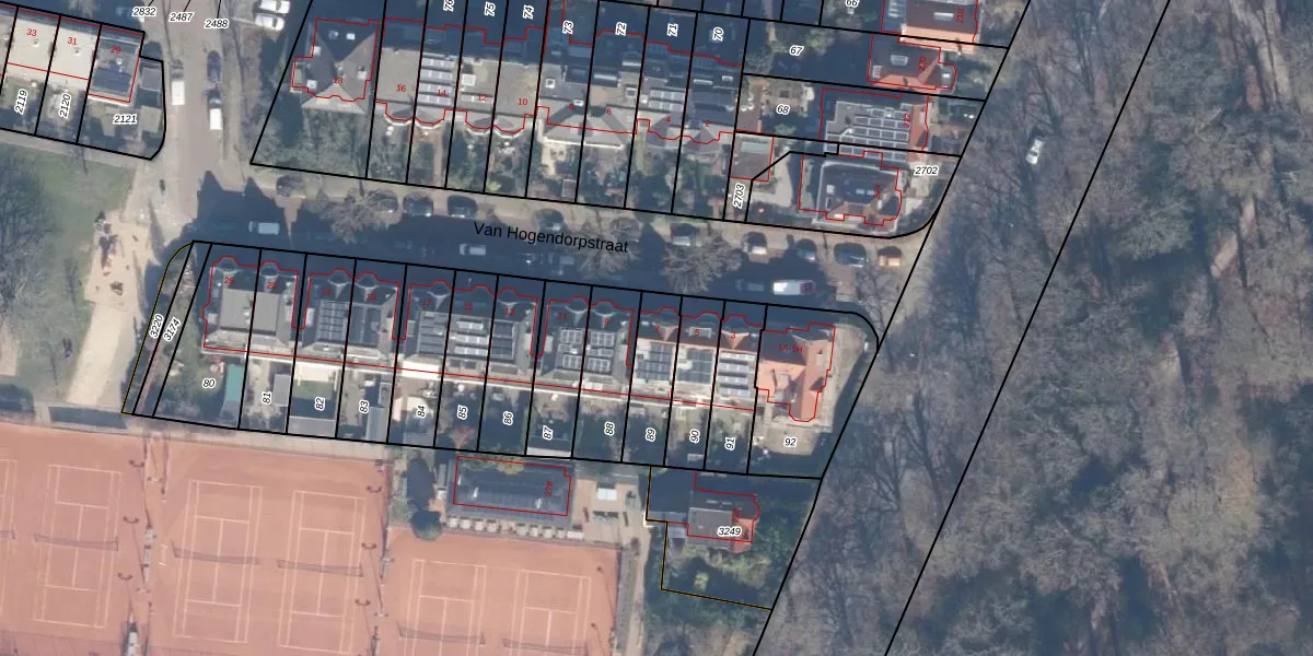 Gebruik de zoekbalk of klik op een perceel voor informatie over de adressen binnen dit perceel.
