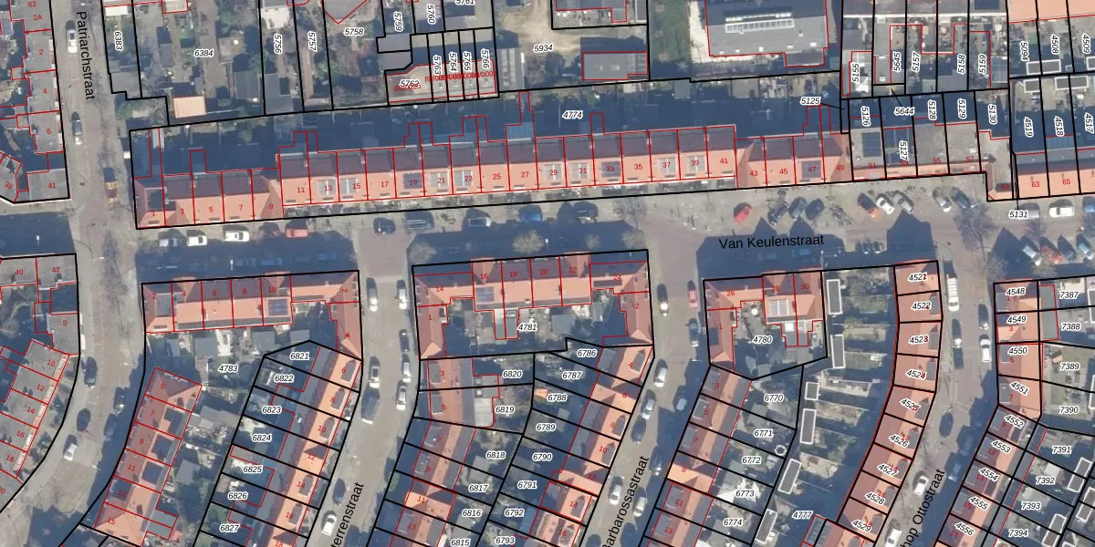 Het perceel waarop Van Keulenstraat 20 staat heeft een oppervlakte van 738 m². Dit is een groot perceel. De perceeloppervlakte wordt geregistreerd door het Kadaster. Gedetailleerde informatie over de maten van dit perceel kunt u vinden in het rapport Kadastrale kaart met maatvoering van Van Keulenstraat 20.
