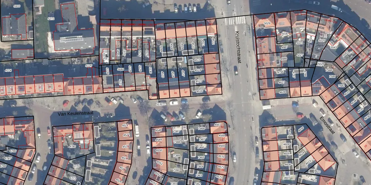 Gebruik de zoekbalk of klik op een perceel voor informatie over de adressen binnen dit perceel.