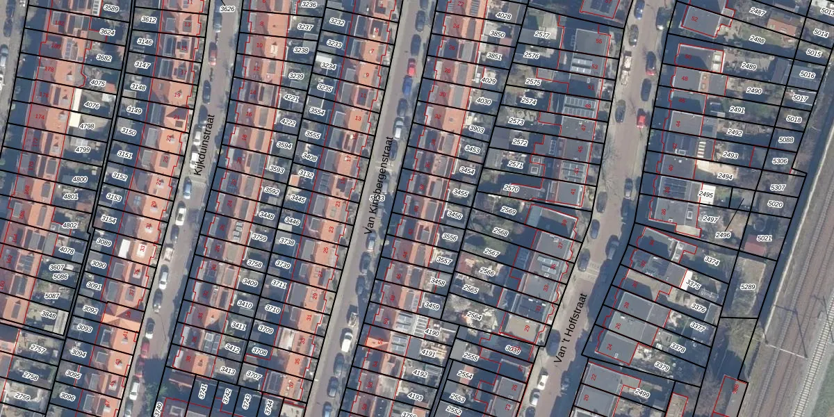 Gebruik de zoekbalk of klik op een perceel voor informatie over de adressen binnen dit perceel.