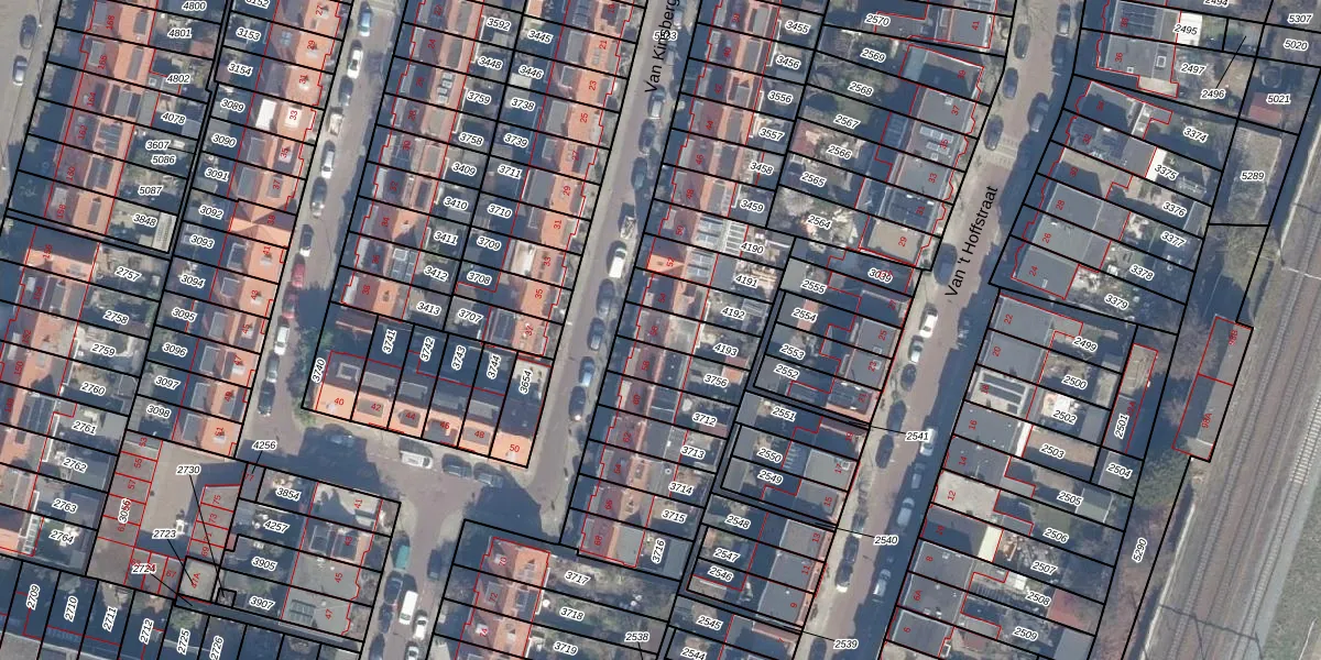 Gebruik de zoekbalk of klik op een perceel voor informatie over de adressen binnen dit perceel.