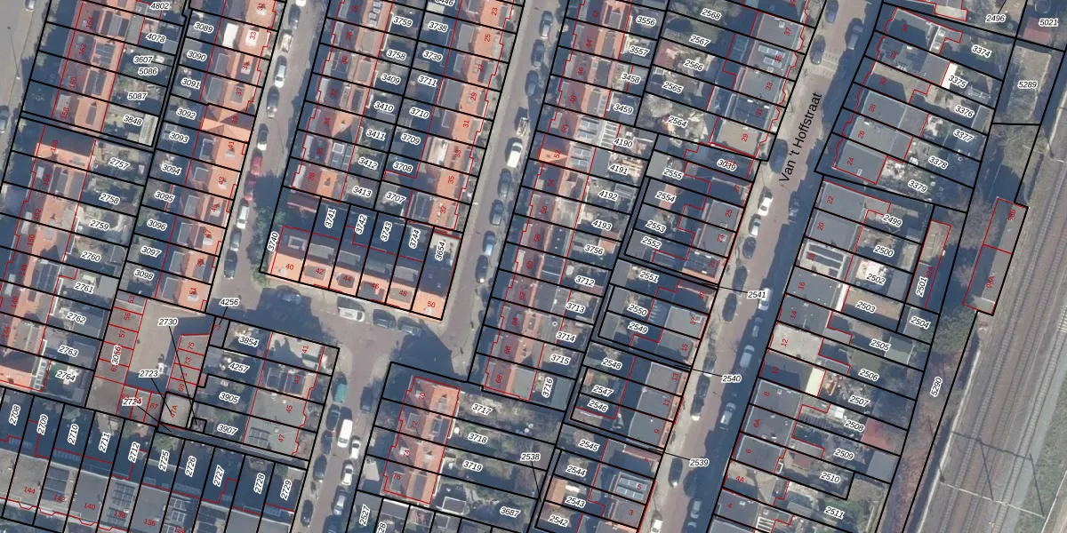Gebruik de zoekbalk of klik op een perceel voor informatie over de adressen binnen dit perceel.