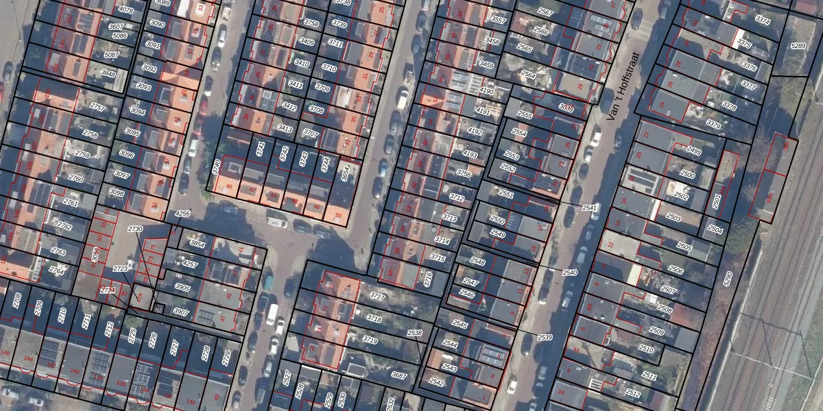 Gebruik de zoekbalk of klik op een perceel voor informatie over de adressen binnen dit perceel.