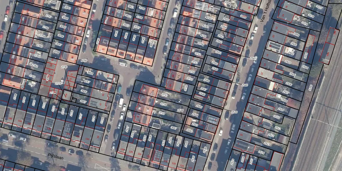 Gebruik de zoekbalk of klik op een perceel voor informatie over de adressen binnen dit perceel.