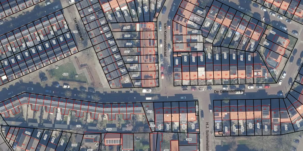 Het perceel waarop Van Koetsveldstraat 16 staat heeft een oppervlakte van 100 m². Dit is een middelgroot perceel. De perceeloppervlakte wordt geregistreerd door het Kadaster. Gedetailleerde informatie over de maten van dit perceel kunt u vinden in het rapport Kadastrale kaart met maatvoering van Van Koetsveldstraat 16.