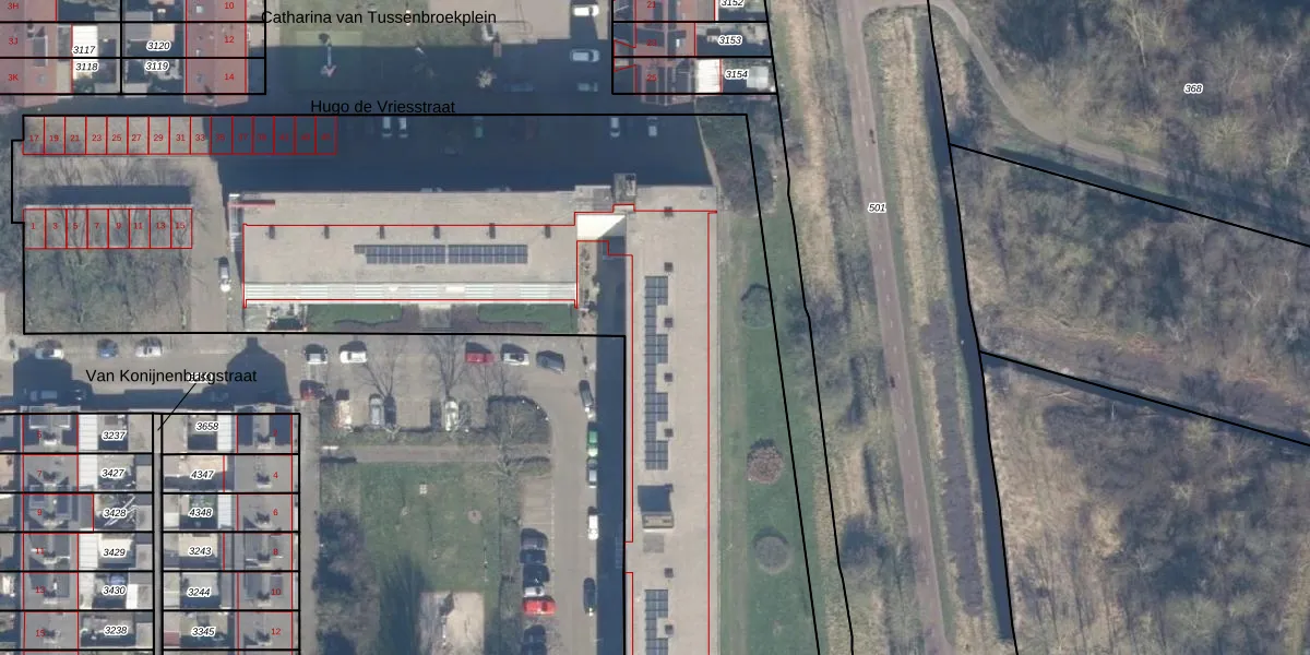 Het perceel waarop Van Konijnenburgstraat 213 staat heeft een oppervlakte van 7433 m². Dit is een zeer groot perceel. De perceeloppervlakte wordt geregistreerd door het Kadaster. Gedetailleerde informatie over de maten van dit perceel kunt u vinden in het rapport Kadastrale kaart met maatvoering van Van Konijnenburgstraat 213.