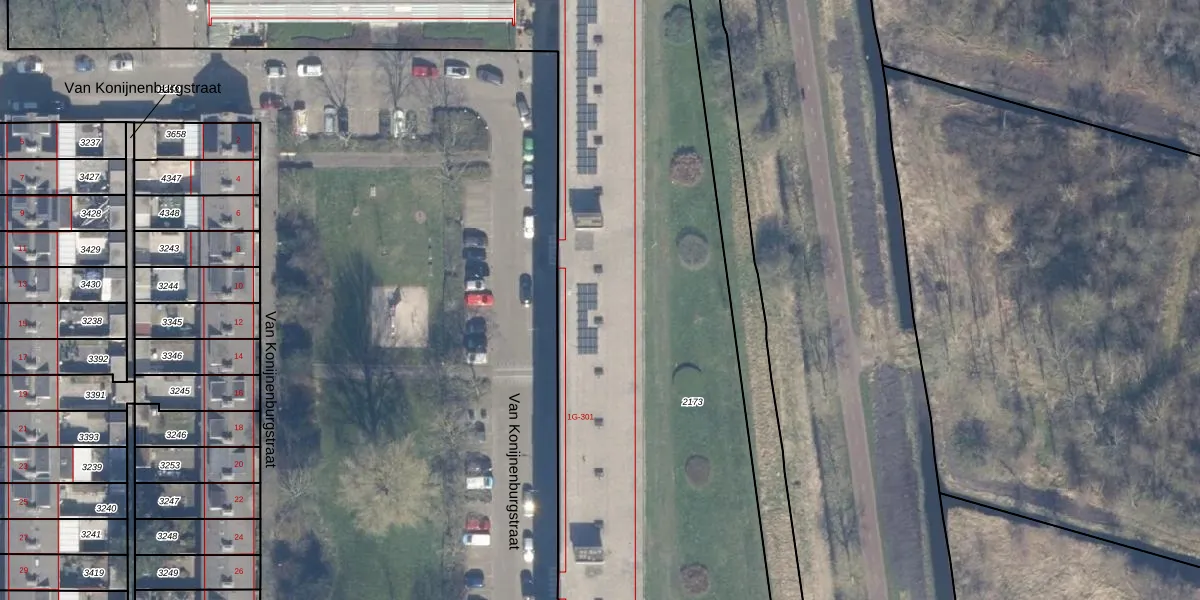 Het perceel waarop Van Konijnenburgstraat 231 staat heeft een oppervlakte van 7433 m². Dit is een zeer groot perceel. De perceeloppervlakte wordt geregistreerd door het Kadaster. Gedetailleerde informatie over de maten van dit perceel kunt u vinden in het rapport Kadastrale kaart met maatvoering van Van Konijnenburgstraat 231.