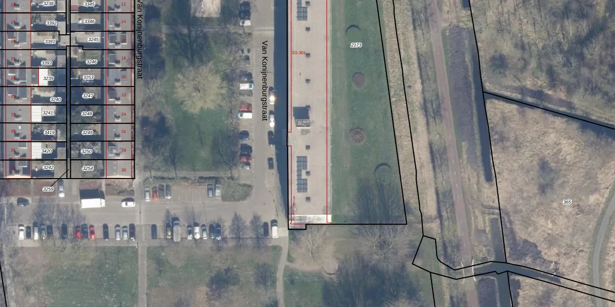 Het perceel waarop Van Konijnenburgstraat 235 staat heeft een oppervlakte van 7433 m². Dit is een zeer groot perceel. De perceeloppervlakte wordt geregistreerd door het Kadaster. Gedetailleerde informatie over de maten van dit perceel kunt u vinden in het rapport Kadastrale kaart met maatvoering van Van Konijnenburgstraat 235.