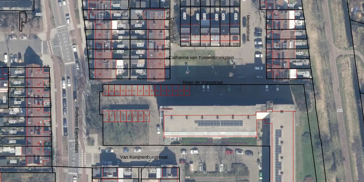 Het perceel waarop Van Konijnenburgstraat 43 staat heeft een oppervlakte van 7433 m². Dit is een zeer groot perceel. De perceeloppervlakte wordt geregistreerd door het Kadaster. Gedetailleerde informatie over de maten van dit perceel kunt u vinden in het rapport Kadastrale kaart met maatvoering van Van Konijnenburgstraat 43.