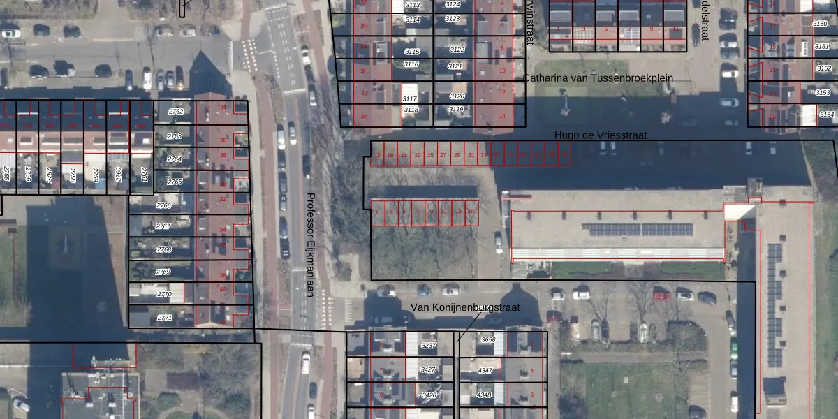 Het perceel waarop Van Konijnenburgstraat 7 staat heeft een oppervlakte van 7433 m². Dit is een zeer groot perceel. De perceeloppervlakte wordt geregistreerd door het Kadaster. Gedetailleerde informatie over de maten van dit perceel kunt u vinden in het rapport Kadastrale kaart met maatvoering van Van Konijnenburgstraat 7.