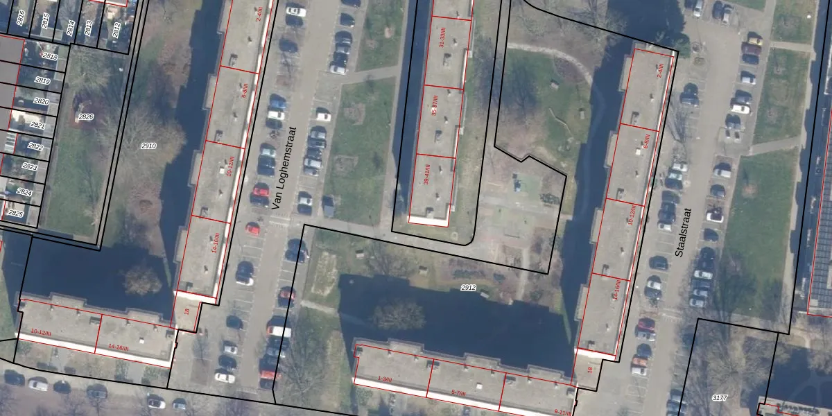 Het perceel waarop Van Loghemstraat 41 staat heeft een oppervlakte van 2973 m². Dit is een zeer groot perceel. De perceeloppervlakte wordt geregistreerd door het Kadaster. Gedetailleerde informatie over de maten van dit perceel kunt u vinden in het rapport Kadastrale kaart met maatvoering van Van Loghemstraat 41.