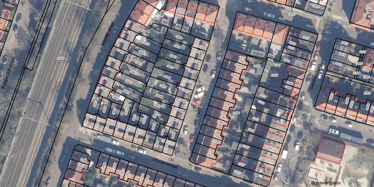 Van Loostraat 12 is gelegen op kadastraal perceel HLM01H2410. Deze kadastrale aanduiding is uniek en wordt gebruikt door het Kadaster om eigendomsrechten en andere zakelijke rechten vast te leggen. Het perceel maakt onderdeel uit van de kadastrale gemeente Haarlem.