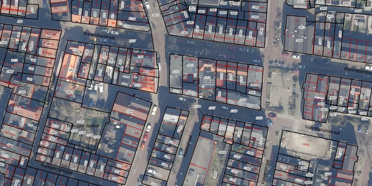 Het perceel waarop Van Marumstraat 1 staat heeft een oppervlakte van 65 m². Dit is een klein perceel. De perceeloppervlakte wordt geregistreerd door het Kadaster. Gedetailleerde informatie over de maten van dit perceel kunt u vinden in het rapport Kadastrale kaart met maatvoering van Van Marumstraat 1.