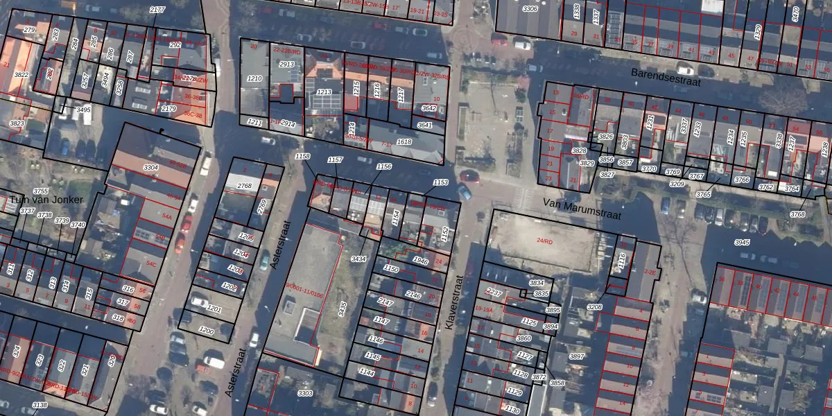 Het perceel waarop Van Marumstraat 16 staat heeft een oppervlakte van 55 m². Dit is een klein perceel. De perceeloppervlakte wordt geregistreerd door het Kadaster. Gedetailleerde informatie over de maten van dit perceel kunt u vinden in het rapport Kadastrale kaart met maatvoering van Van Marumstraat 16.