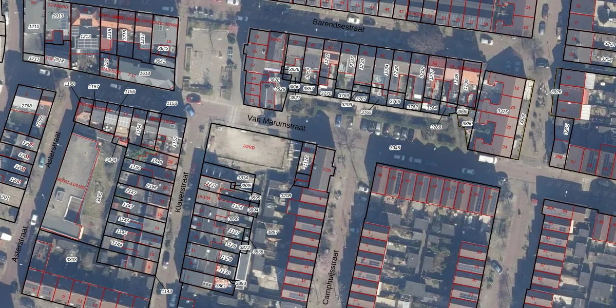 Het perceel waarop Van Marumstraat 32 staat heeft een oppervlakte van 47 m². Dit is een klein perceel. De perceeloppervlakte wordt geregistreerd door het Kadaster. Gedetailleerde informatie over de maten van dit perceel kunt u vinden in het rapport Kadastrale kaart met maatvoering van Van Marumstraat 32.