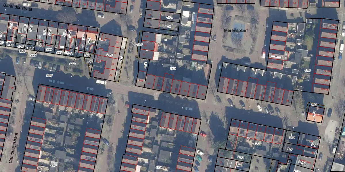 Het perceel waarop Van Marumstraat 63 staat heeft een oppervlakte van 2068 m². Dit is een zeer groot perceel. De perceeloppervlakte wordt geregistreerd door het Kadaster. Gedetailleerde informatie over de maten van dit perceel kunt u vinden in het rapport Kadastrale kaart met maatvoering van Van Marumstraat 63.