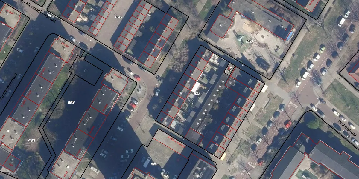 Het perceel waarop Van Moerkerkenstraat 103 staat heeft een oppervlakte van 2029 m². Dit is een zeer groot perceel. De perceeloppervlakte wordt geregistreerd door het Kadaster. Gedetailleerde informatie over de maten van dit perceel kunt u vinden in het rapport Kadastrale kaart met maatvoering van Van Moerkerkenstraat 103.