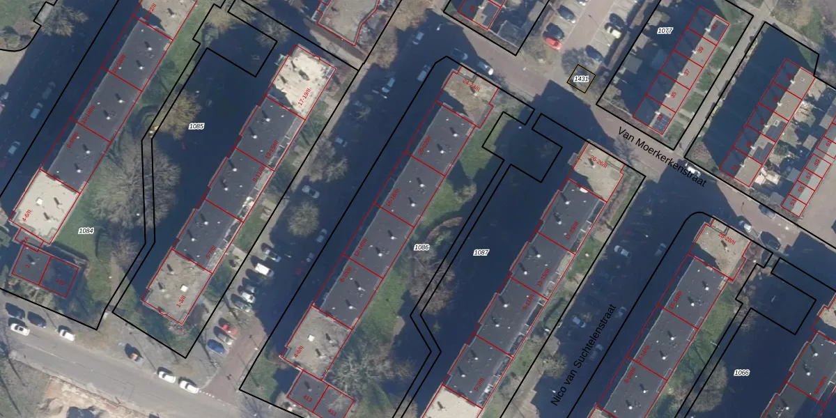 Het perceel waarop Van Moerkerkenstraat 16-III staat heeft een oppervlakte van 2590 m². Dit is een zeer groot perceel. De perceeloppervlakte wordt geregistreerd door het Kadaster. Gedetailleerde informatie over de maten van dit perceel kunt u vinden in het rapport Kadastrale kaart met maatvoering van Van Moerkerkenstraat 16-III.