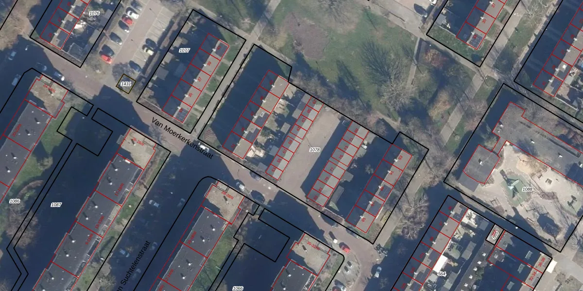 Het perceel waarop Van Moerkerkenstraat 59 staat heeft een oppervlakte van 2427 m². Dit is een zeer groot perceel. De perceeloppervlakte wordt geregistreerd door het Kadaster. Gedetailleerde informatie over de maten van dit perceel kunt u vinden in het rapport Kadastrale kaart met maatvoering van Van Moerkerkenstraat 59.