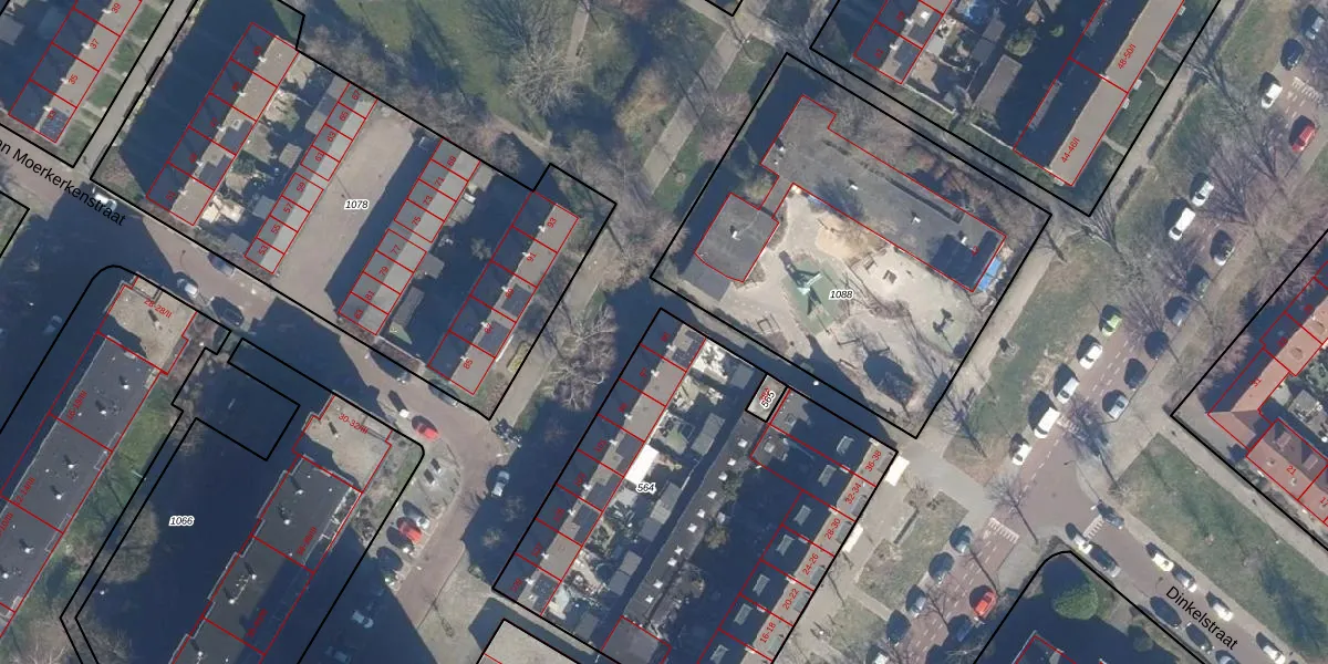 Het perceel waarop Van Moerkerkenstraat 95 staat heeft een oppervlakte van 2029 m². Dit is een zeer groot perceel. De perceeloppervlakte wordt geregistreerd door het Kadaster. Gedetailleerde informatie over de maten van dit perceel kunt u vinden in het rapport Kadastrale kaart met maatvoering van Van Moerkerkenstraat 95.