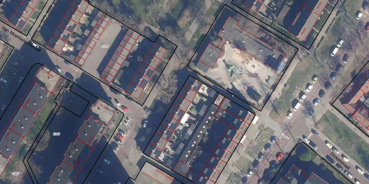 Het perceel waarop Van Moerkerkenstraat 97 staat heeft een oppervlakte van 2029 m². Dit is een zeer groot perceel. De perceeloppervlakte wordt geregistreerd door het Kadaster. Gedetailleerde informatie over de maten van dit perceel kunt u vinden in het rapport Kadastrale kaart met maatvoering van Van Moerkerkenstraat 97.