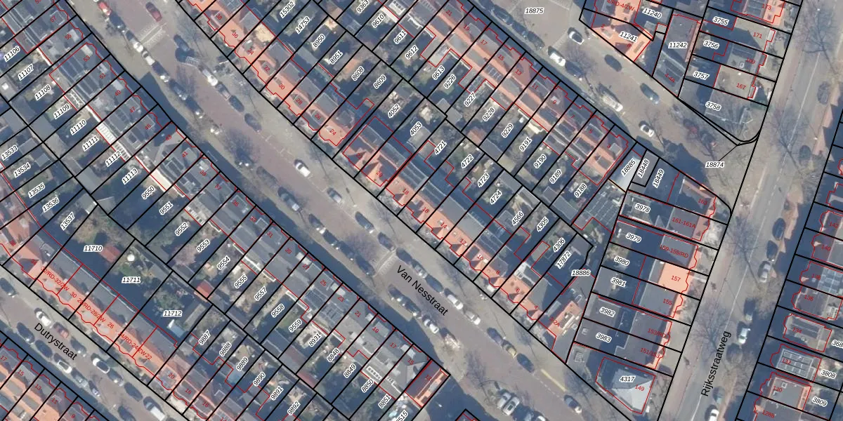 Gebruik de zoekbalk of klik op een perceel voor informatie over de adressen binnen dit perceel.