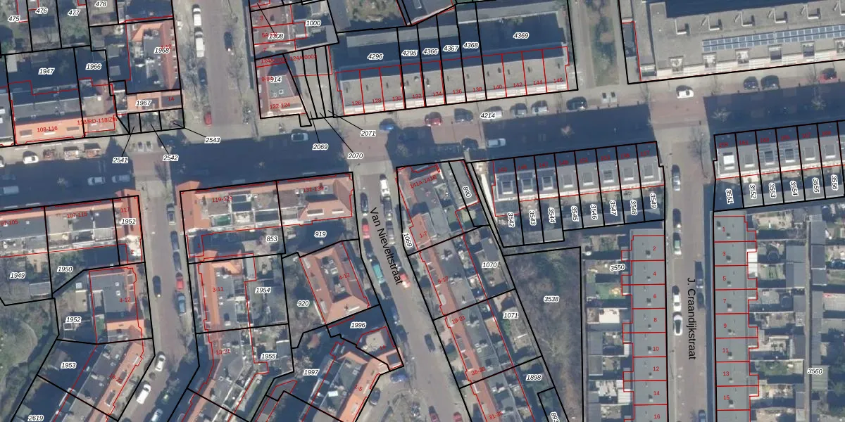 Van Nieveltstraat 1 is gelegen op kadastraal perceel HLM02P1069. Deze kadastrale aanduiding is uniek en wordt gebruikt door het Kadaster om eigendomsrechten en andere zakelijke rechten vast te leggen. Het perceel maakt onderdeel uit van de kadastrale gemeente Haarlem.