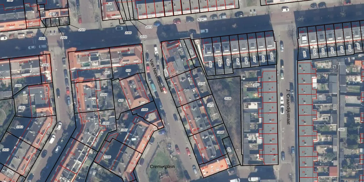 Van Nieveltstraat 15 is gelegen op kadastraal perceel HLM02P1070. Deze kadastrale aanduiding is uniek en wordt gebruikt door het Kadaster om eigendomsrechten en andere zakelijke rechten vast te leggen. Het perceel maakt onderdeel uit van de kadastrale gemeente Haarlem.