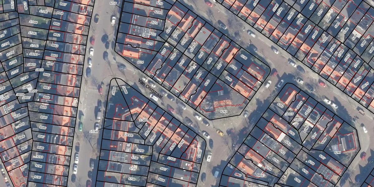 Gebruik de zoekbalk of klik op een perceel voor informatie over de adressen binnen dit perceel.