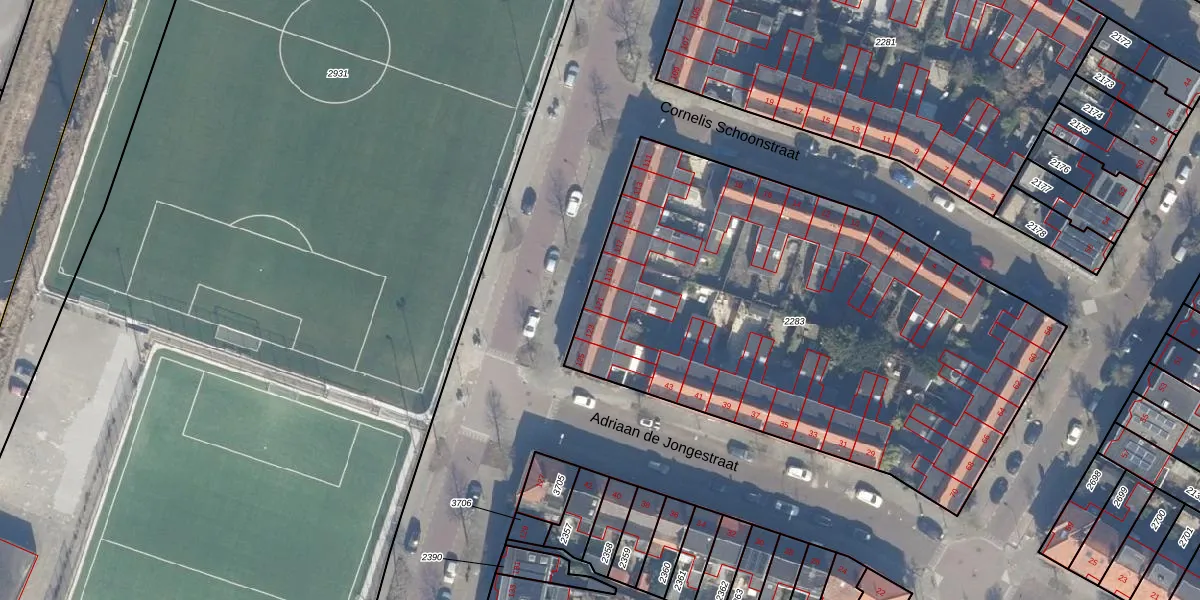 Het perceel waarop Van Oosten de Bruijnstraat 121 staat heeft een oppervlakte van 2890 m². Dit is een zeer groot perceel. De perceeloppervlakte wordt geregistreerd door het Kadaster. Gedetailleerde informatie over de maten van dit perceel kunt u vinden in het rapport Kadastrale kaart met maatvoering van Van Oosten de Bruijnstraat 121.