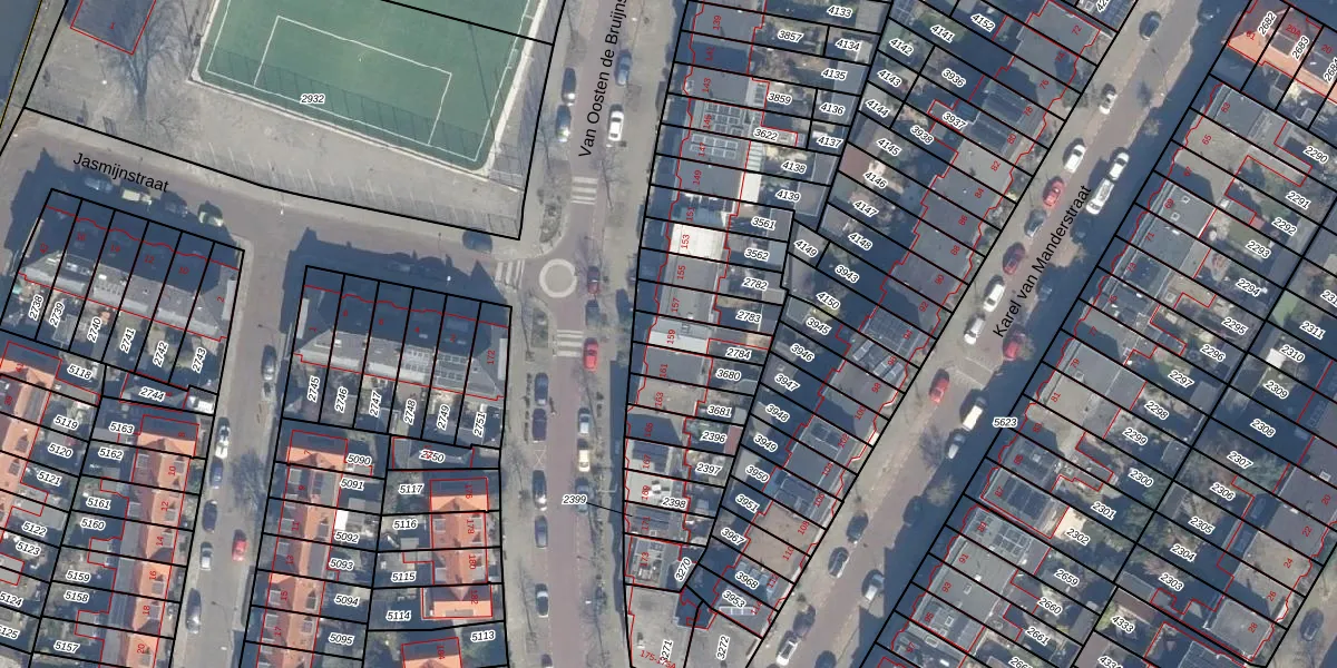 Van Oosten de Bruijnstraat 159 is gelegen op kadastraal perceel HLM01I2784. Deze kadastrale aanduiding is uniek en wordt gebruikt door het Kadaster om eigendomsrechten en andere zakelijke rechten vast te leggen. Het perceel maakt onderdeel uit van de kadastrale gemeente Haarlem.