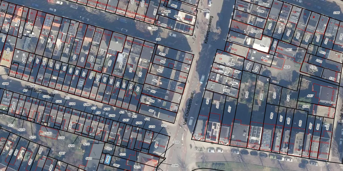 Van Ostadestraat 8-A is gelegen op kadastraal perceel HLM01A562. Deze kadastrale aanduiding is uniek en wordt gebruikt door het Kadaster om eigendomsrechten en andere zakelijke rechten vast te leggen. Het perceel maakt onderdeel uit van de kadastrale gemeente Haarlem.