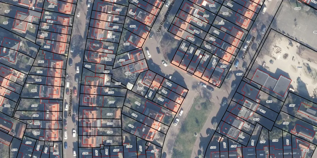 Het perceel waarop Van Raephorststraat 42 staat heeft een oppervlakte van 91 m². Dit is een klein perceel. De perceeloppervlakte wordt geregistreerd door het Kadaster. Gedetailleerde informatie over de maten van dit perceel kunt u vinden in het rapport Kadastrale kaart met maatvoering van Van Raephorststraat 42.