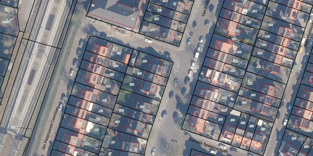 Het perceel waarop Van Riebeecklaan 38 staat heeft een oppervlakte van 162 m². Dit is een middelgroot perceel. De perceeloppervlakte wordt geregistreerd door het Kadaster. Gedetailleerde informatie over de maten van dit perceel kunt u vinden in het rapport Kadastrale kaart met maatvoering van Van Riebeecklaan 38.