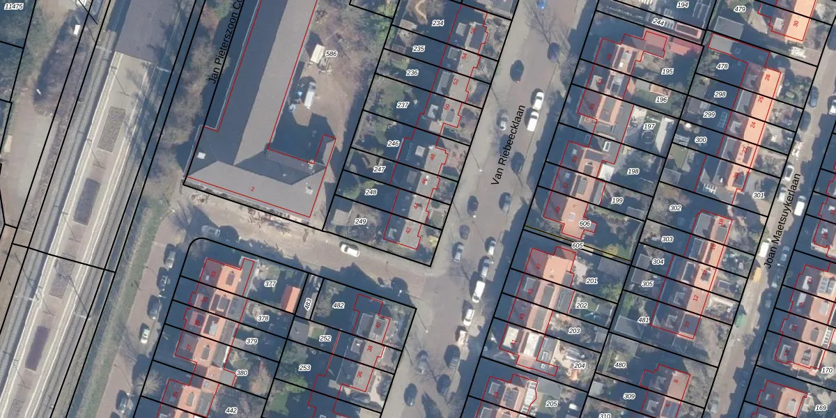 Het perceel waarop Van Riebeecklaan 44 staat heeft een oppervlakte van 165 m². Dit is een middelgroot perceel. De perceeloppervlakte wordt geregistreerd door het Kadaster. Gedetailleerde informatie over de maten van dit perceel kunt u vinden in het rapport Kadastrale kaart met maatvoering van Van Riebeecklaan 44.